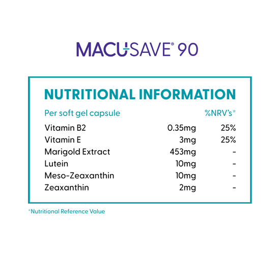 *MACU-SAVE Contains Vitamin B2, which helps maintain normal Vision.